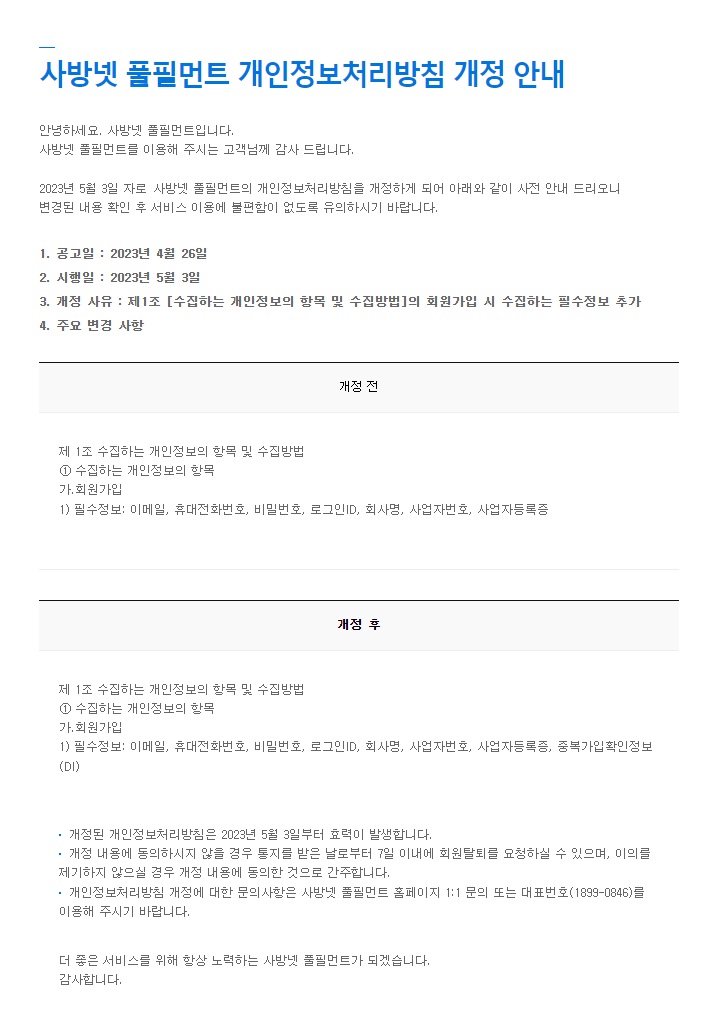 개인정보처리방침 개정 안내(v1.1) 바로가기